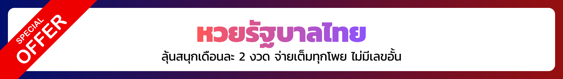 หวยรัฐบาลไทย | ออกทุกวันที่ 1 และ 16 ของเดือน | 3 ตัวบน บาทละ 970 / 2 ตัว บาทละ 97 |