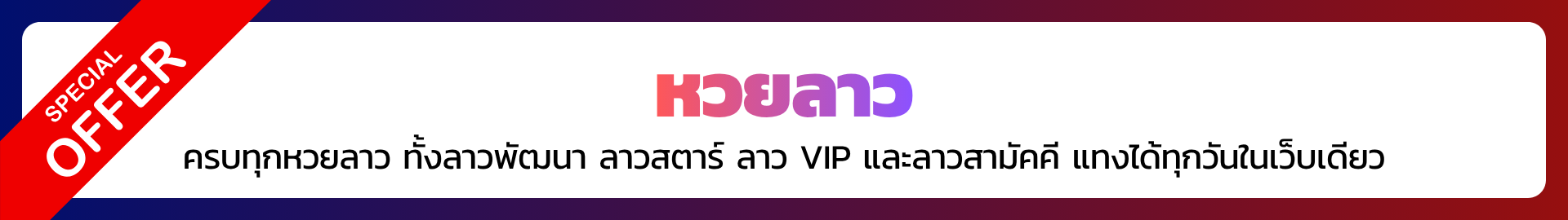 หวยลาวพัฒนา | ทุกวันจันทร์–พฤหัสบดี | 3 ตัวบน บาทละ 970 / 2 ตัว บาทละ 97 |