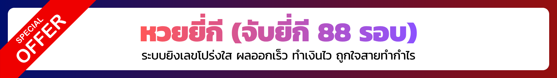 หวยจับยี่กี (88 รอบ/วัน) | ออกรางวัลทุก 15 นาที | 3 ตัวบน บาทละ 970 / 2 ตัว บาทละ 97 |